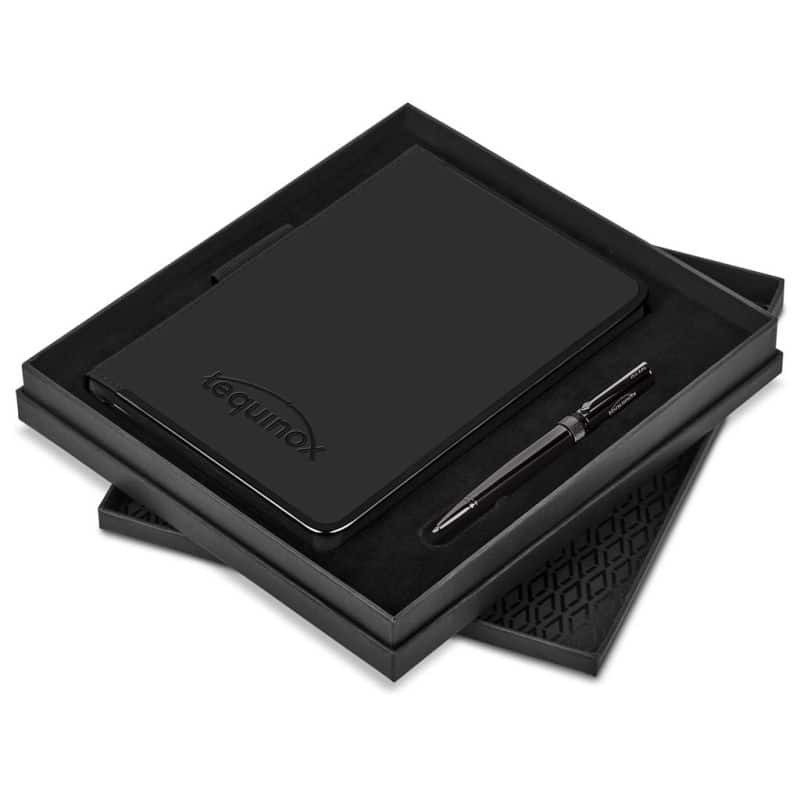 With smooth, high-quality pages inside, it’s ideal for journaling, sketching, meetings, or everyday thoughts. Whether on your desk or in your hand, the sleek black accents and solid build make a bold yet tasteful statement. It’s well paired in a 2-piece gift box with a metal Alex Varga ball pen with a striking gun metal finish.