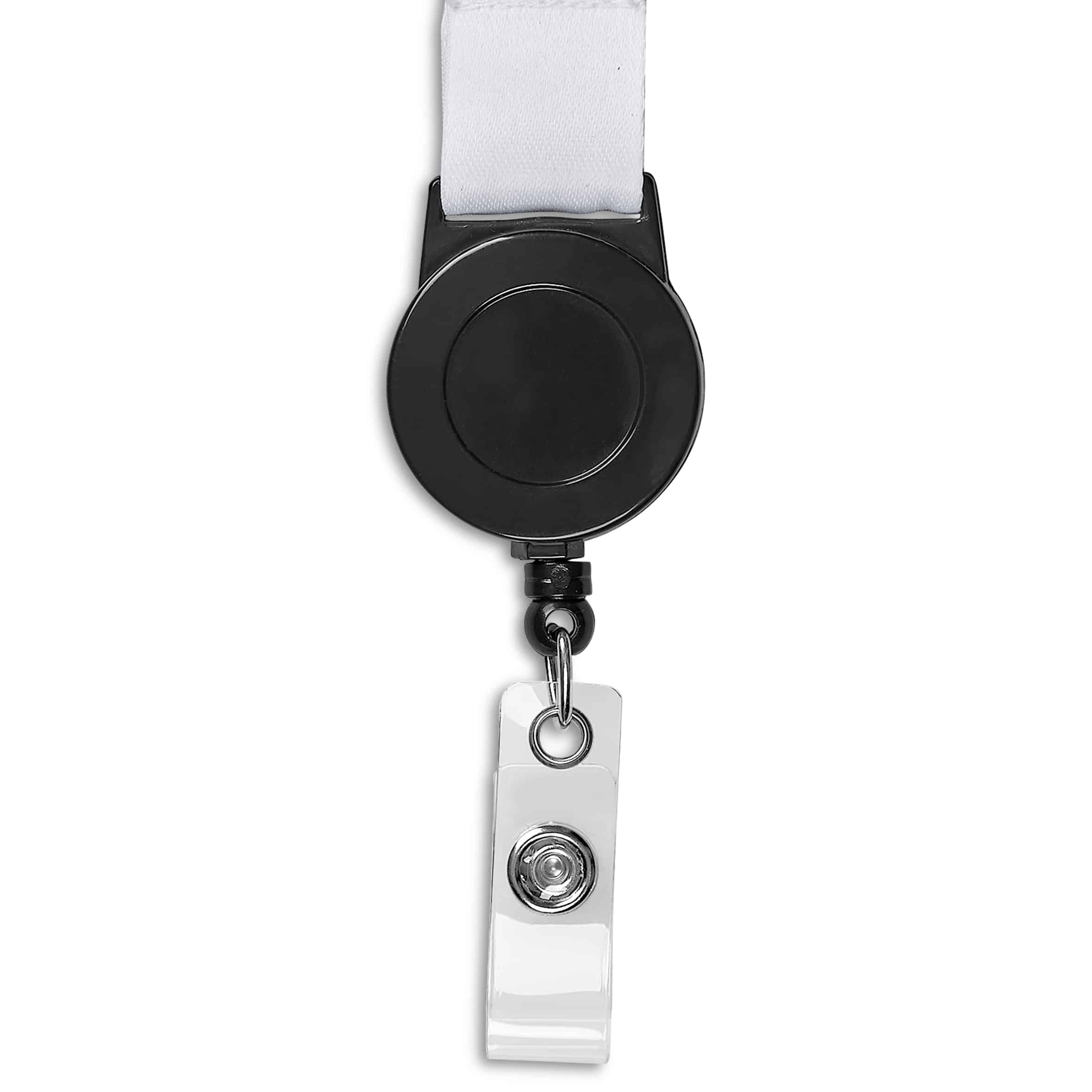 Made from durable satin polyester with a clean white base, it offers a crisp look and reliable performance. Designed for hands-free functionality, this lanyard keeps ID cards and access tags within easy reach—without compromising on style or practicality.