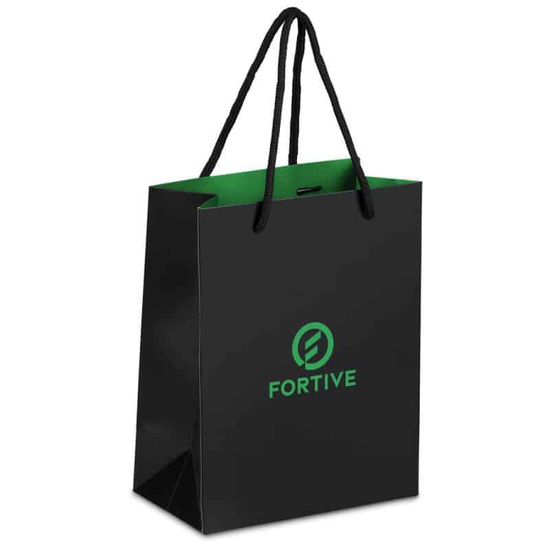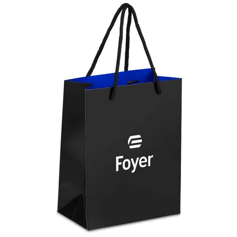 The bold, vibrant inner colour adds a striking touch of celebratory colour, beautifully contrasted by the matte black exterior. Designed with sturdy black cord handles and a reinforced baseboard, the bag offers both style and durability.