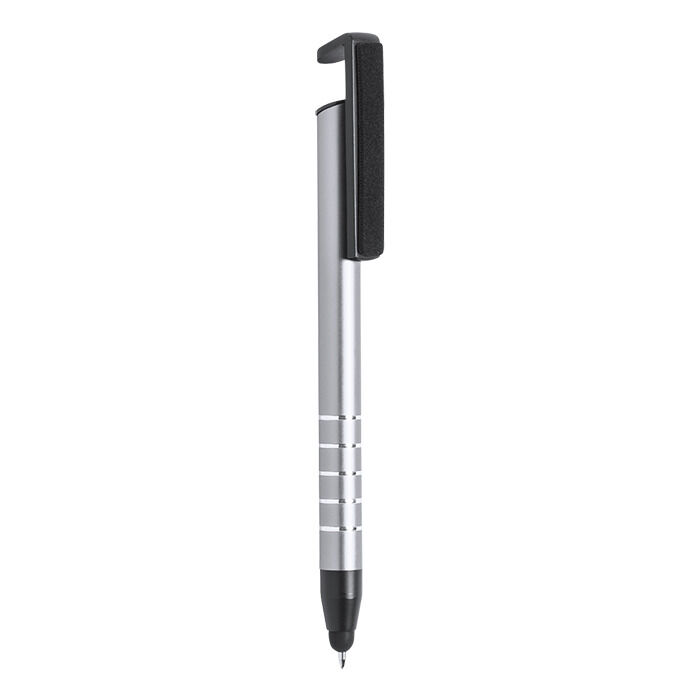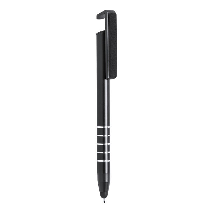 Ball pen with mobile devices holder and built-in screen cleaner in clip