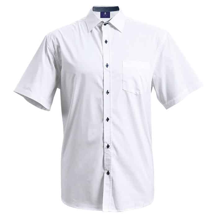 Contrast spotted fabric on the inner collar stand, button stand and cuffs