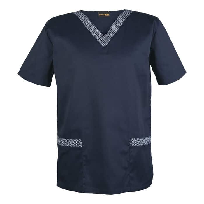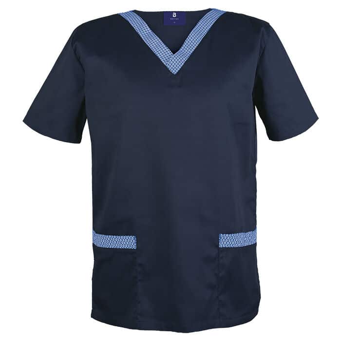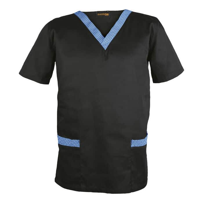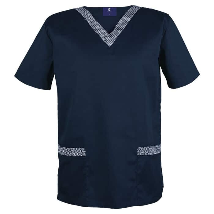 Contrast shwe shwe fabric at V-shaped neckline