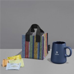 The Yatta range of hampers is expertly crafted to provide a delightful experience with a curated selection of premium items and edible treats. The contents are elegantly presented in a Yatta sublimated RPET felt mini gift bag.