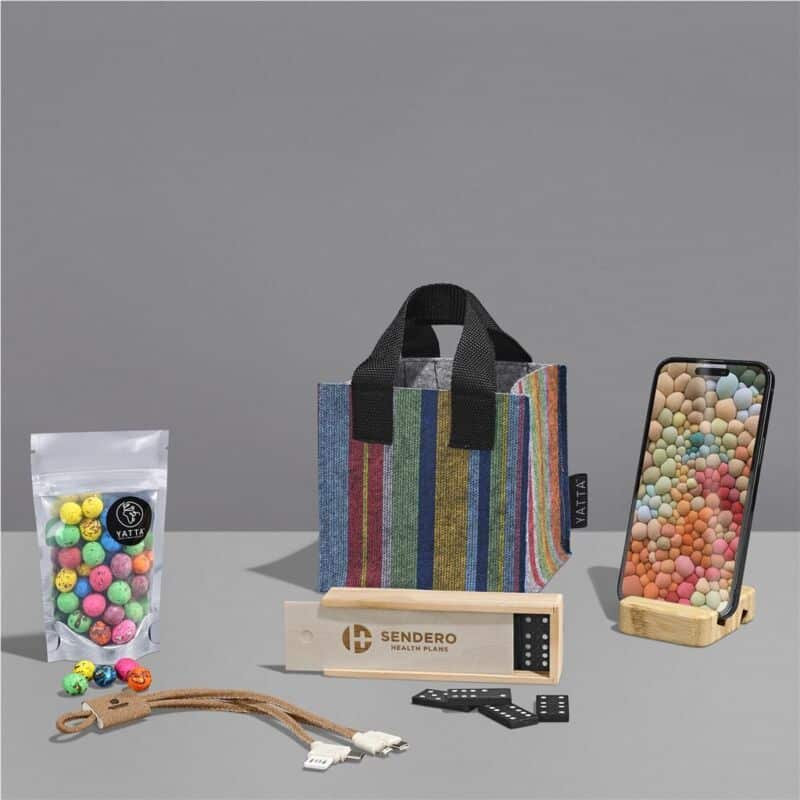 The Yatta range of hampers is expertly crafted to provide a delightful experience with a curated selection of premium items and edible treats. The contents are elegantly presented in a Yatta sublimated RPET felt mini gift bag.