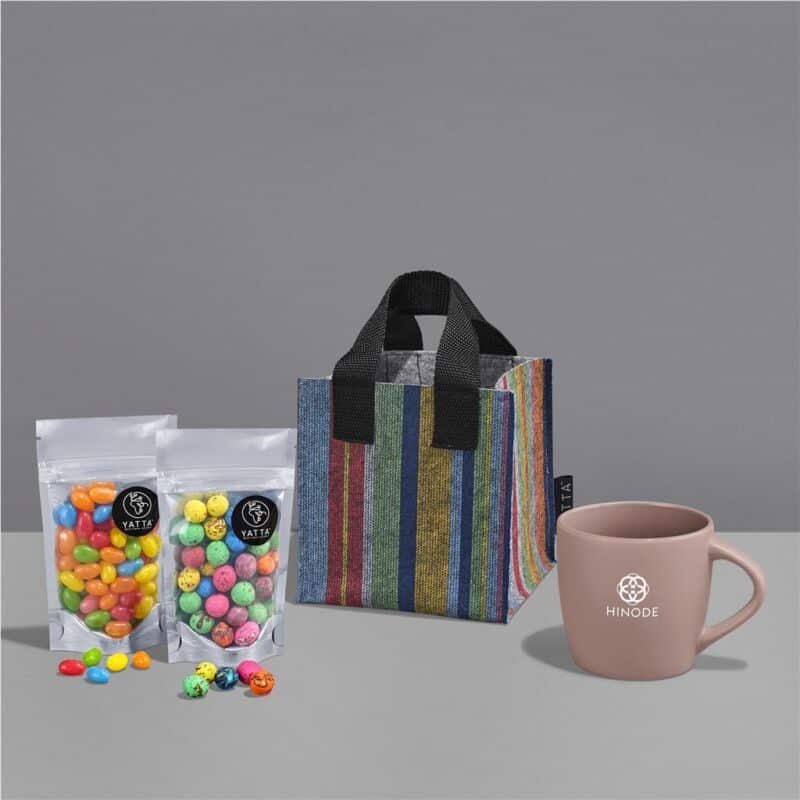 The Yatta range of hampers is expertly crafted to provide a delightful experience with a curated selection of premium items and edible treats. The contents are elegantly presented in a Yatta sublimated RPET felt mini gift bag.